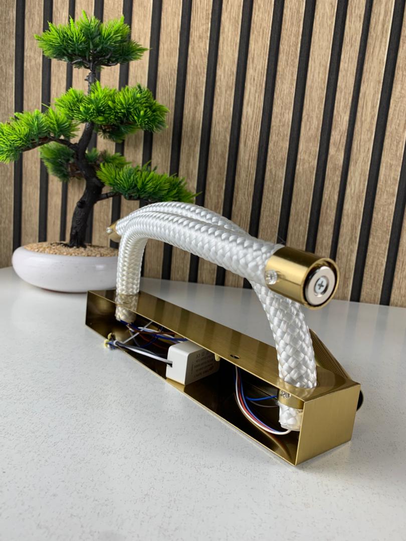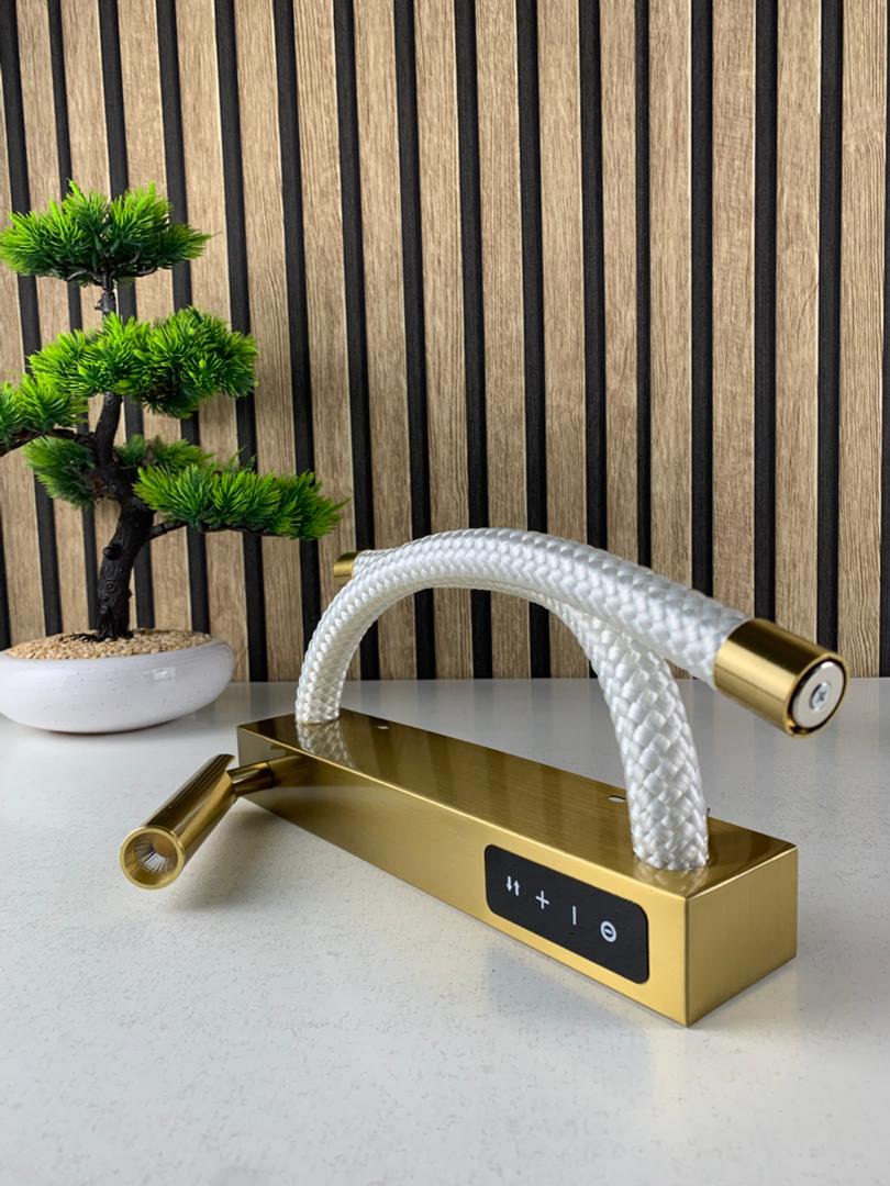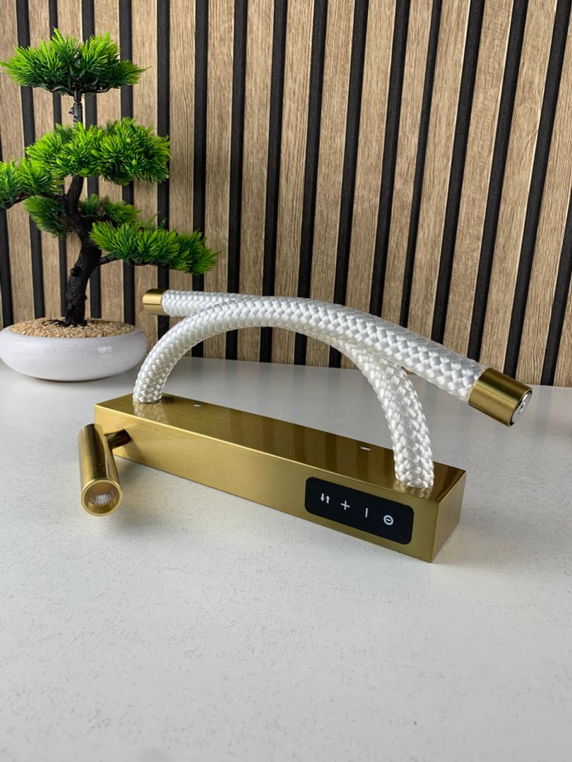 تتميز هذه الأبليك بهيكل معدني راقٍ بلمسة ذهبية، مع أنبوبين ضوئيين مضفرين يقدّمان إضاءة ناعمة ومتجانسة.