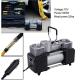 Double Cylindre Haute Performance : Assure un gonflage rapide et puissant, idéal pour les pneus de voiture, moto, SUV et plus encore.