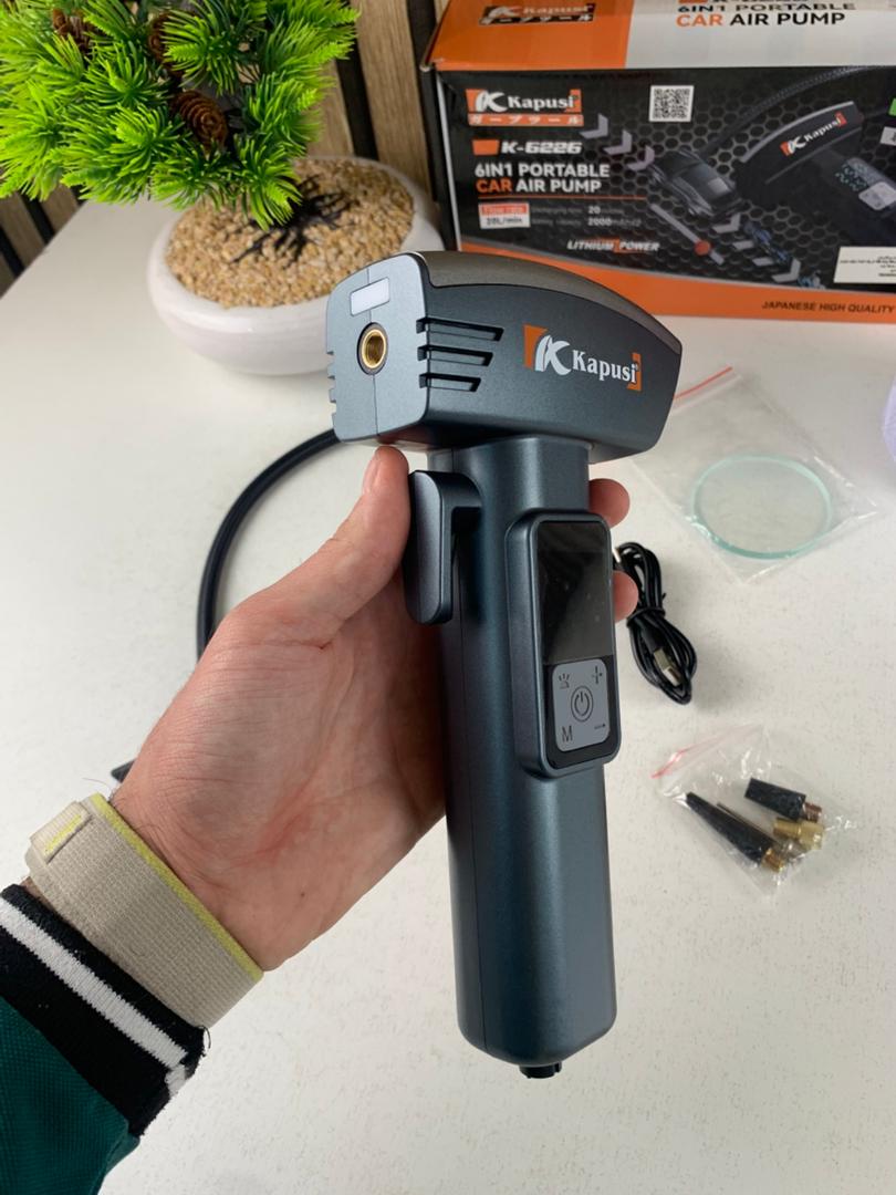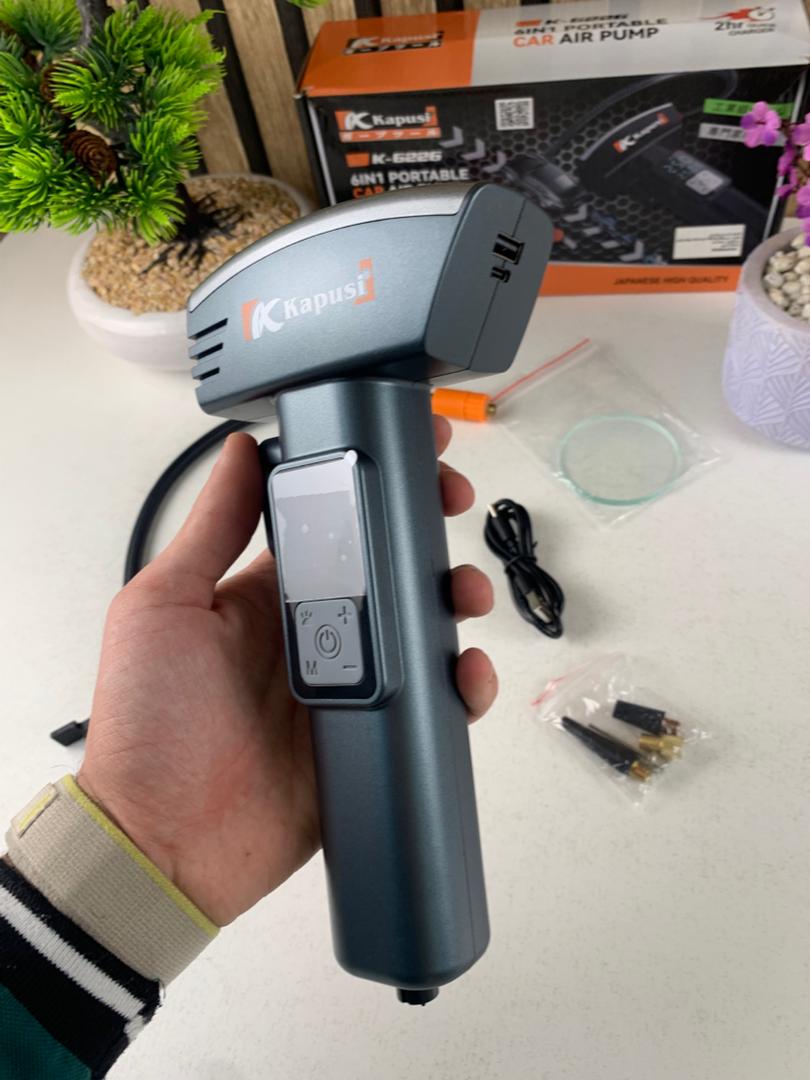 منفاخ هواء ذكي، قوي، آمن، وسهل الحمل — رفيقك المثالي على الطريق سواءً كنت تسافر، تتخيّم أو تواجه حالة طارئة.