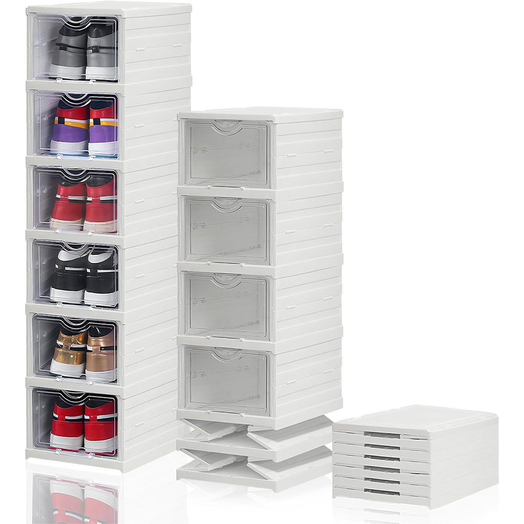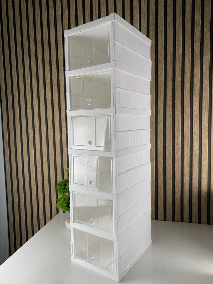 علبة تخزين الأحذية الشفافة والقابلة للطي تُعد الحل المثالي لتنظيم أحذيتك. تصميمها العملي يسمح لك بتوفير المساحة وترتيب كل زوج بسهولة ووضوح، مع إمكانية الوصول السريع دون فوضى.