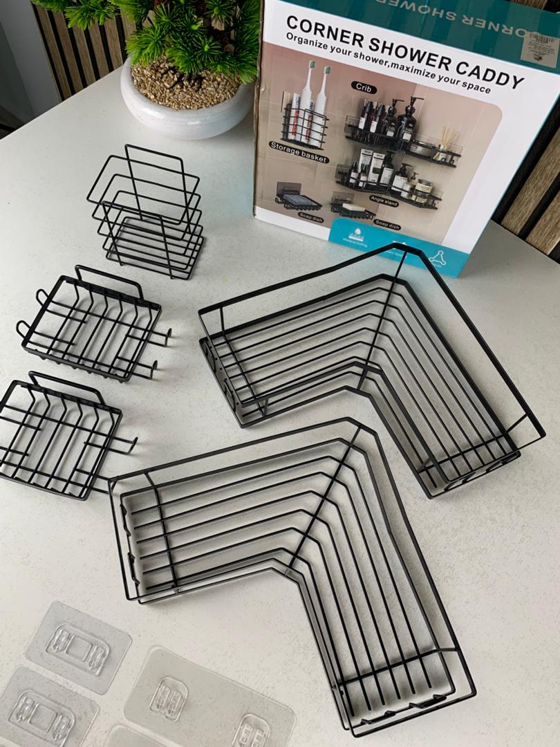 رتّب حمّامك بكل سهولة مع منظم زاوية الدوش ذو التصميم الواسع والعملي. هذا الطقم فيه 5 رفوف كبيرة تستغل مساحة زاوية 90° بطريقة مثالية، قادرين يشدو حتى قوارير شامبو كبار بلا ما يعمّر المكان.