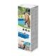 La gamme de piscines amovibles Metal Frame se caractérise par son design extérieur bleu et ses barres blanches, tandis que la paroi intérieure présente un design en mosaïque imitant le carrelage bleu. Disponible en deux formats : circulaire et rectangulaire.
