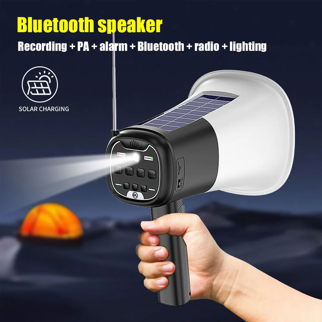 🔆 مكبر صوت شمسي متعدد الوظائف – قوة، إضاءة واتصال متكامل 🔊