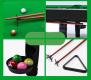 L’ensemble comprend tout ce dont vous avez besoin : des queues de billard, de la craie, un support triangulaire et des boules de billard.