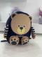 🧸 شكل رأس دبّ لطيف + أذرع مخططة من القماش + جيوب على شكل كفوف بسحاب