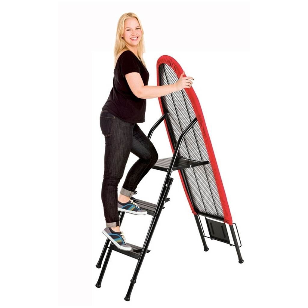 ✅ حل ذكي يجمع بين السلم المستقر و طاولة كوي مريحة – عملي للمنزل ويوفر لك المساحة.