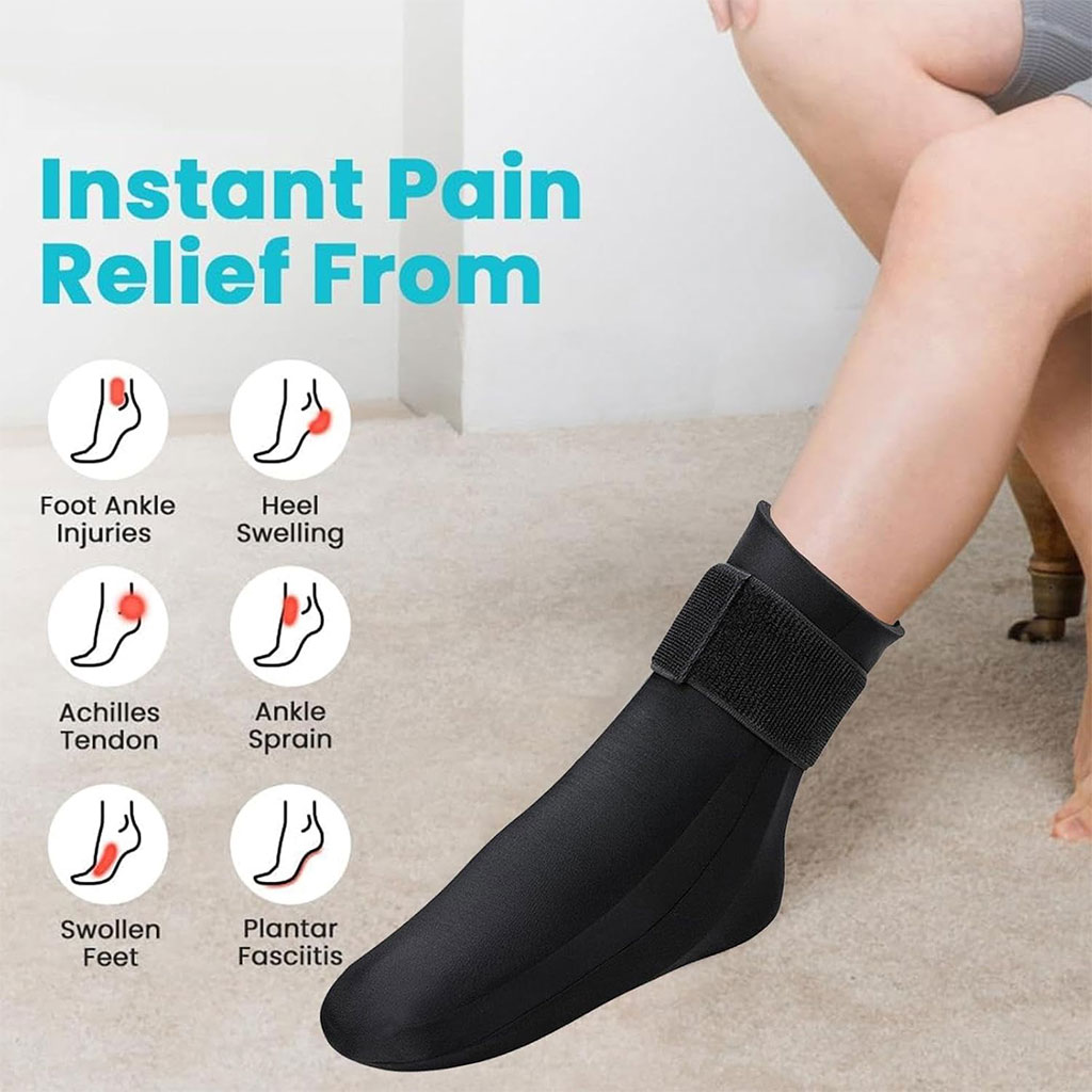 تغلف القدم والكاحل والكعب بالكامل لتمنحك تبريدًا شاملاً وضغطًا مهدئًا يساعد في تخفيف الالتهابات والآلام بسرعة.