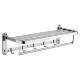 تصميم جداري مزوّد برفين علويين لتخزين المستلزمات، مع خطافات سفلية لتعليق المناشف، أردية الحمام، الملابس وغيرها.