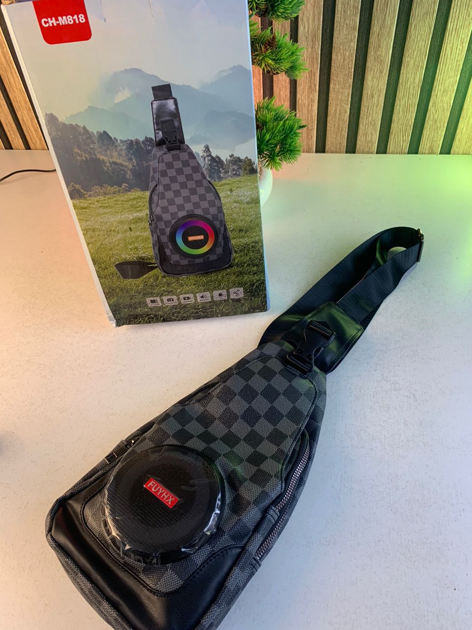🎵🎒 حقيبة الظهر الجانبية CH-M818 بسماعة بلوتوث – ستايل، راحة وموسيقى أينما كنت!