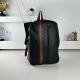 مصنوعة من جلد أسود عالي الجودة، مزينة بنقشة GG البارزة والشريط المميز باللونين الأخضر والأحمر في المقدمة.